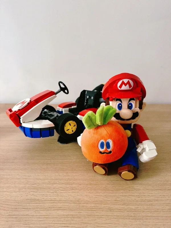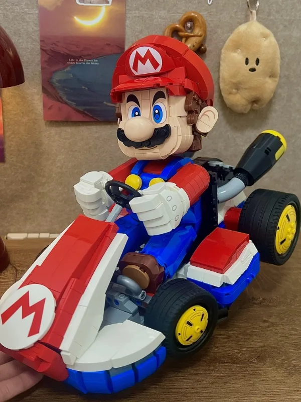Iconic Character & Kart: Construct a detailed replica from the beloved racing series. Features the hero with an articulated head and posable arms. This Super Mario Kart Building Kit brings your hero to life!