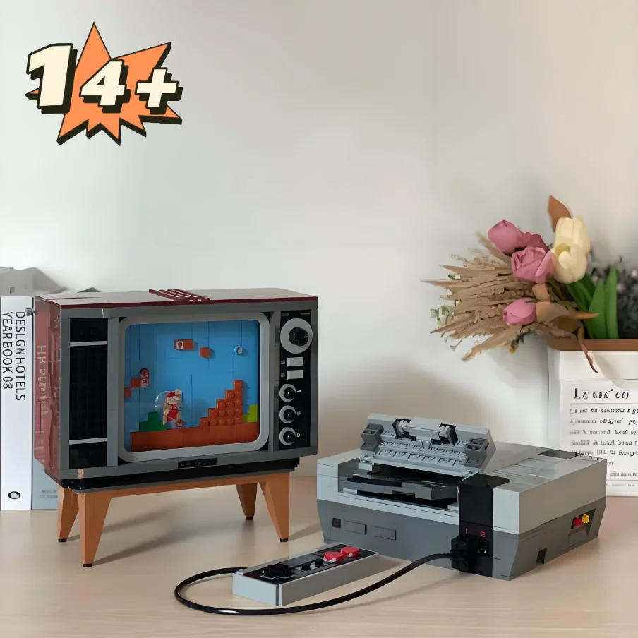 Relive the golden age of video games. This incredible set lets you build one of the most iconic consoles in history and a classic 1980s television.