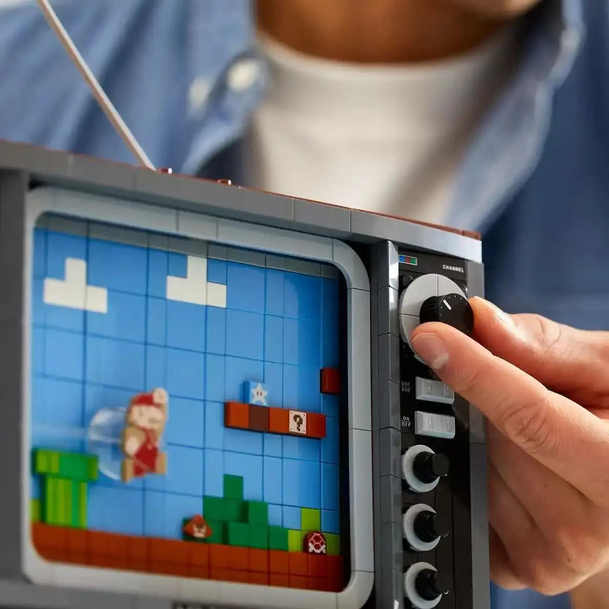 Bring Your Game to Life This is more than just a model. The interactive TV building toy features a handle-operated scrolling screen. Watch the 8-bit world of Super Mario Bros. move before your eyes! Compatible with LEGO 71374, you can add your Mario figure to the top to see him react to on-screen enemies and Power-Ups.