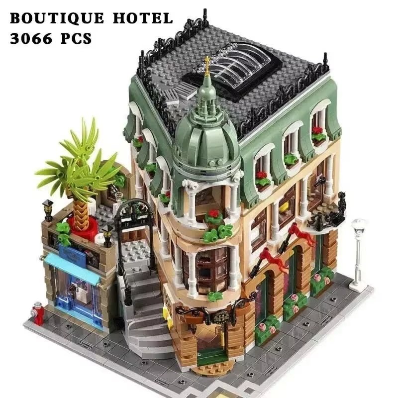 - The Boutique Hotel Building Set offers creative, tight-fitting assembly. It’s a perfect home decoration or exquisite gift. Crafted from premium ABS material, ensuring quality. It’s also compatible with LEGO, expanding your city!