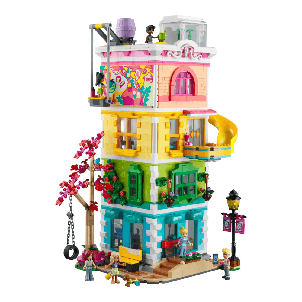 Spark creativity with this modular community centre building set. Kids rearrange floors to build their own space. Explore art, music, gardening, gaming, and more hobbies. Includes 6 minifigures, a pet dog, and tons of accessories for fun stories. Compatible with Lego for bigger builds and endless play.