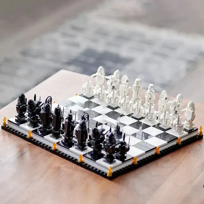 Our Wizard Chess Building Set is crafted from high-quality ABS plastic. All 876 pieces are durable and fully compatible with LEGO 76392 for expanded play.
