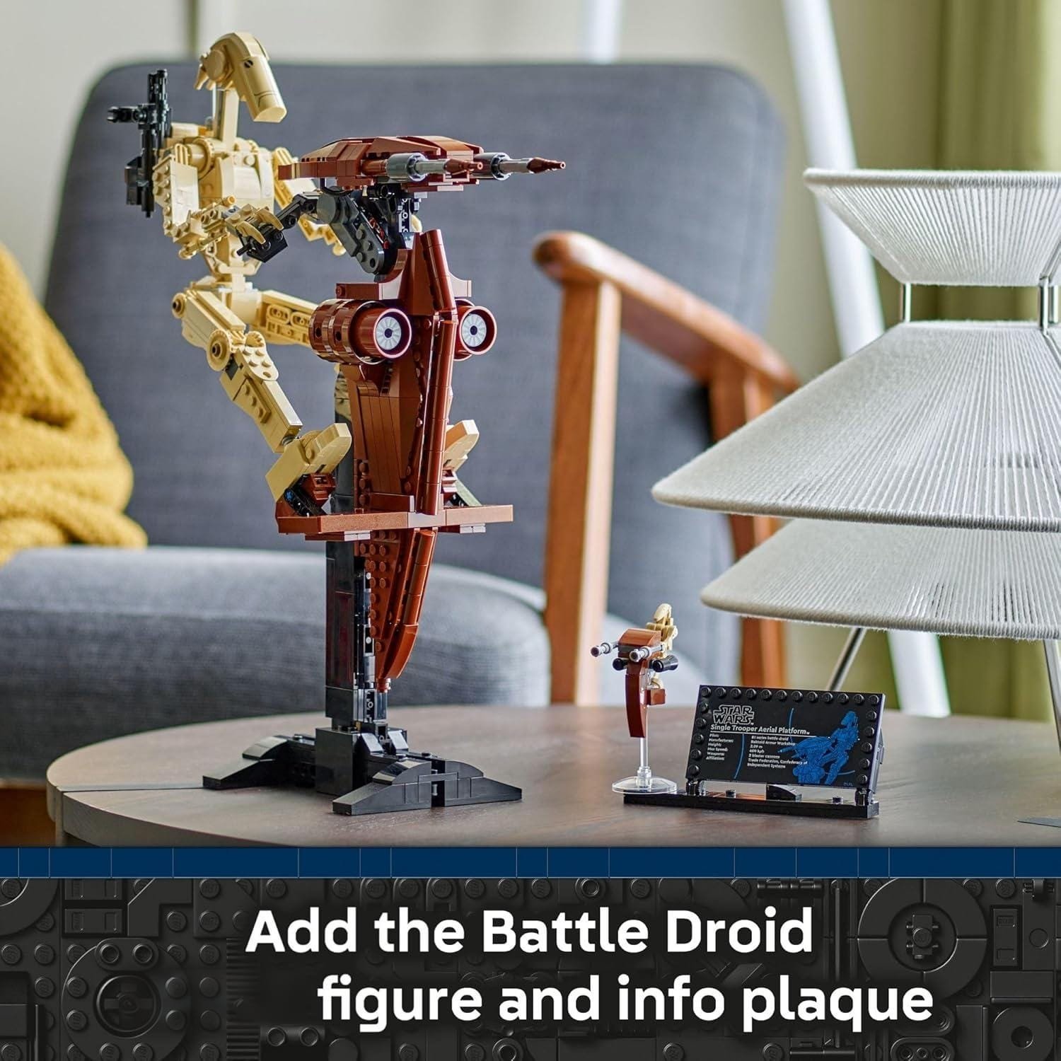 Dynamic display: The droid rides a STAP platform with movable parts for action poses.