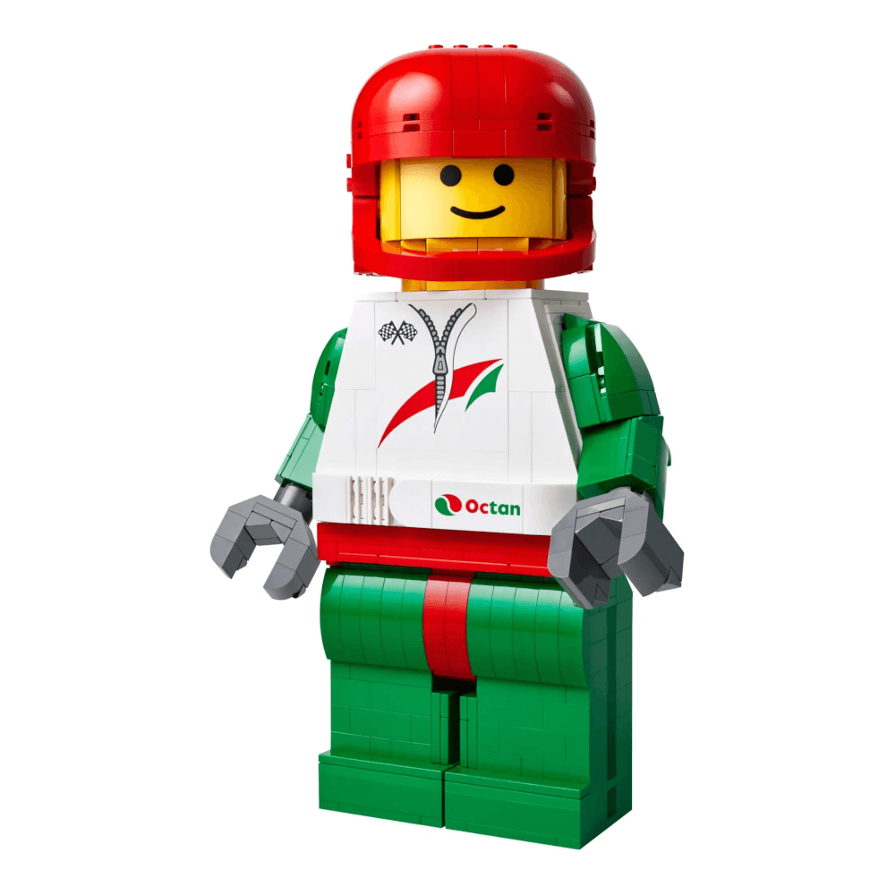 Get ready to race with this impressive upscaled minifigure. The Brickvivid Racing Driver stands over 25cm tall and brings your favorite tiny racer to life in stunning detail. Fully posable head, arms, hands and legs let you create epic victory poses. Lift the helmet to discover a fun hidden surprise inside!