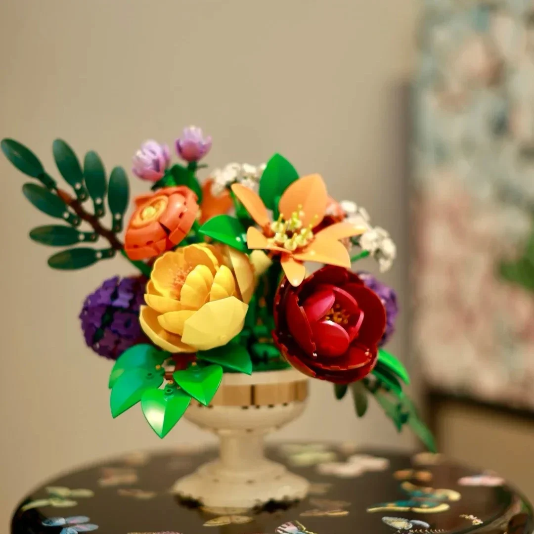 Build your own forever-blooming garden. This Brick Flower Arrangement brings 14 vivid flowers to life – camellia, peony, hydrangea, baby’s breath and more. Perfect for adults who love plants yet hate watering.