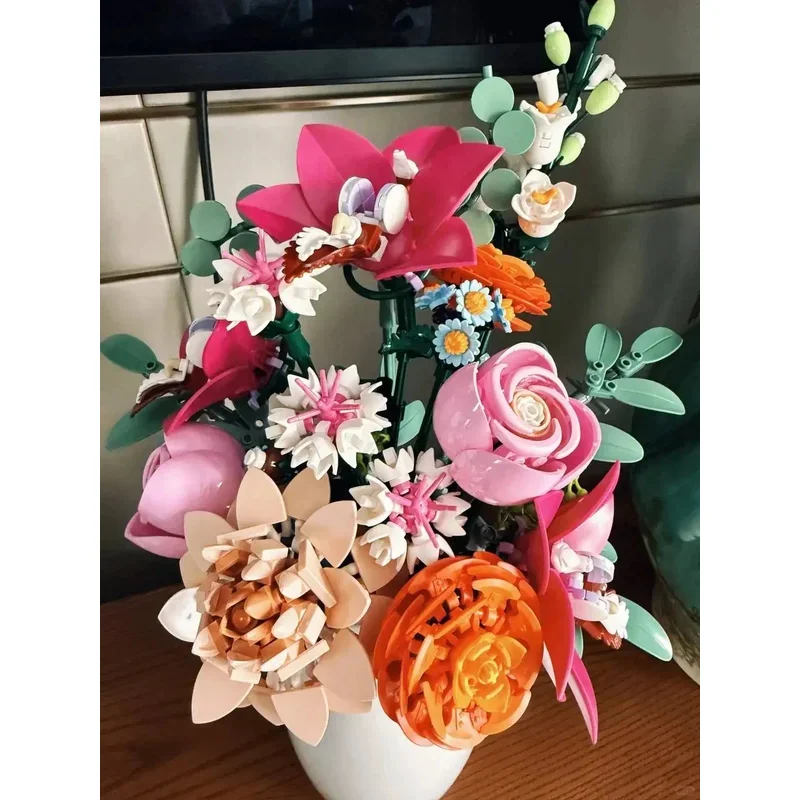 Swap flower heads easily with the smart pin system. Mix and match with other brick flower sets to create your dream bouquet. A relaxing build that turns into stunning home decor.
