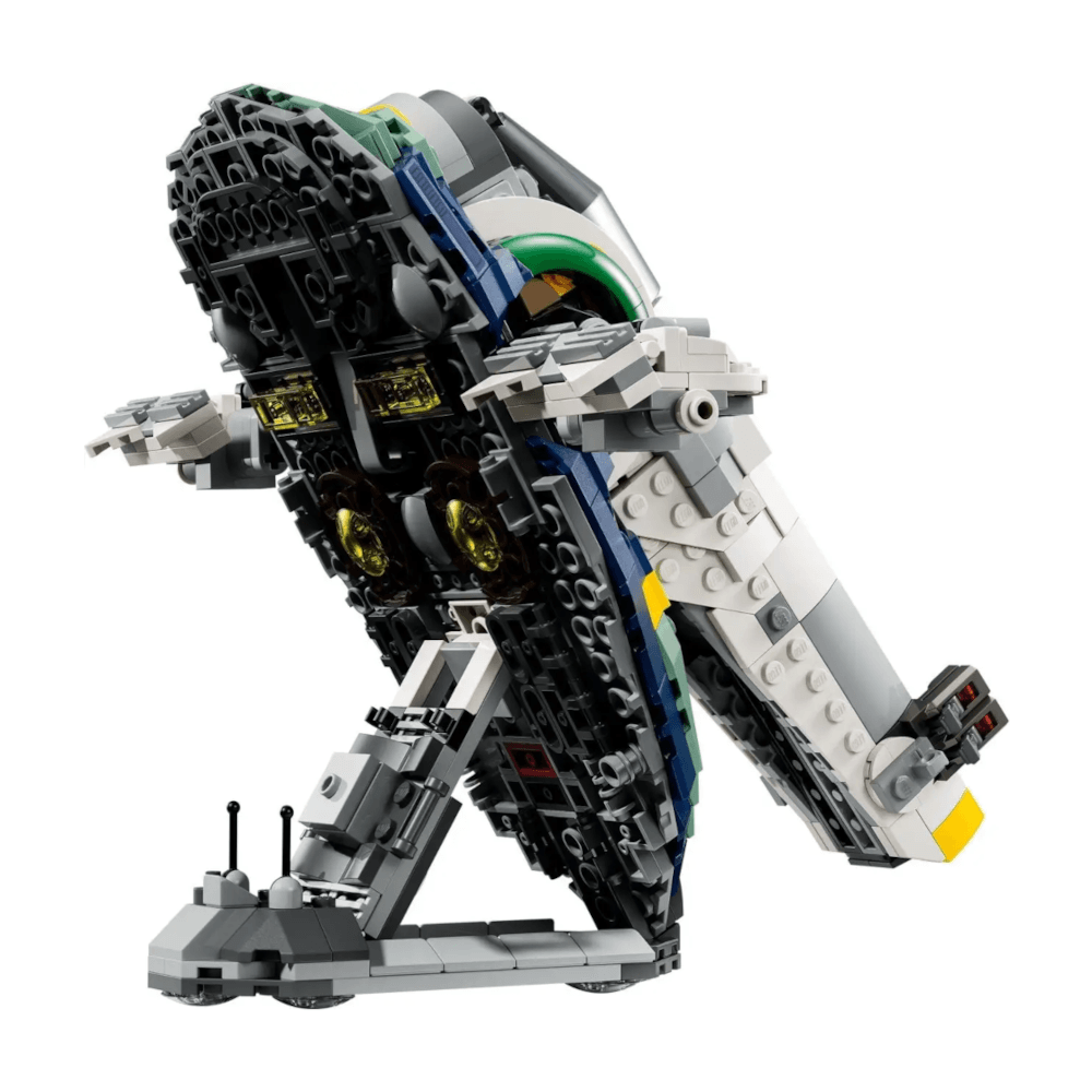 Perfect for young builders and collectors, it comes with Jango Fett (dual blasters + jetpack), young Boba Fett, and Lama Su minifigures, plus a service cart that doubles as a display stand. Fully compatible with Lego 75433 bricks for endless expansion.