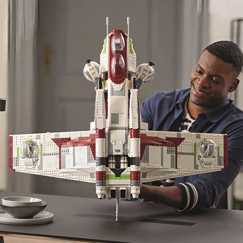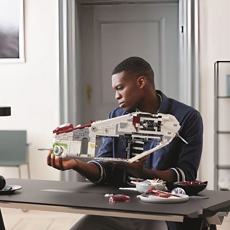 Experience a rewarding building challenge with this massive Republic Gunship large building set. Relive the epic battles of the Clone Wars era. This detailed display model was voted for by fans!