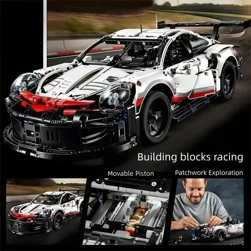 A Stunning Display Piece From the iconic “swan neck” rear wing to the realistic lights, this Porsche 911 RSR model car kit is a showstopper. It’s the perfect display for your home or office. Our high-quality ABS bricks are Compatible with LEGO 42096 pieces for ultimate creativity.