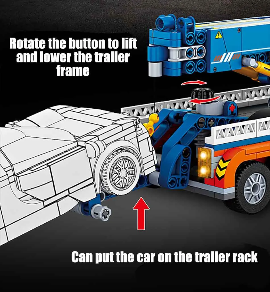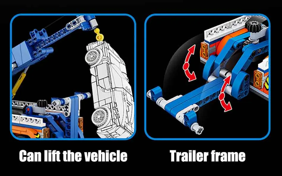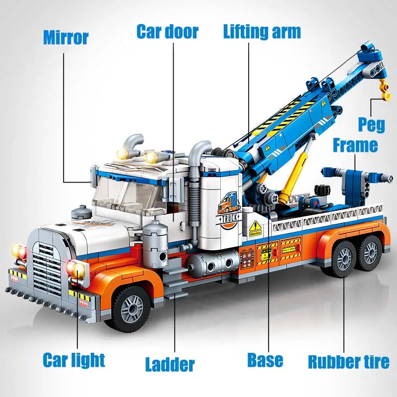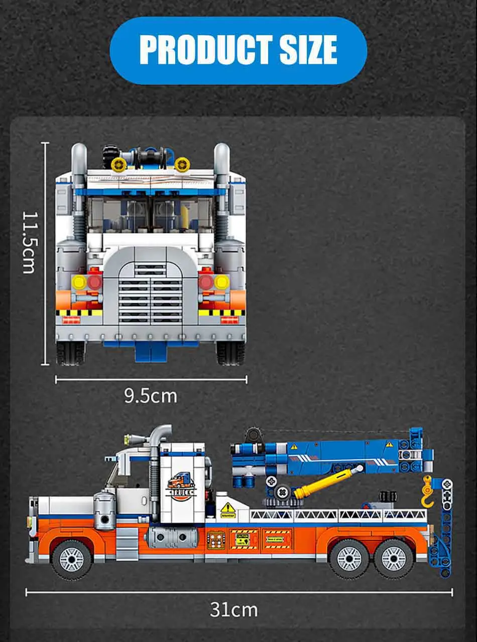 Made from durable ABS plastic. Designed for easy assembly. This heavy duty tow truck building blocks set is perfect for builders aged 6+. It’s a great lego compatible tow truck. Expand your collection easily.