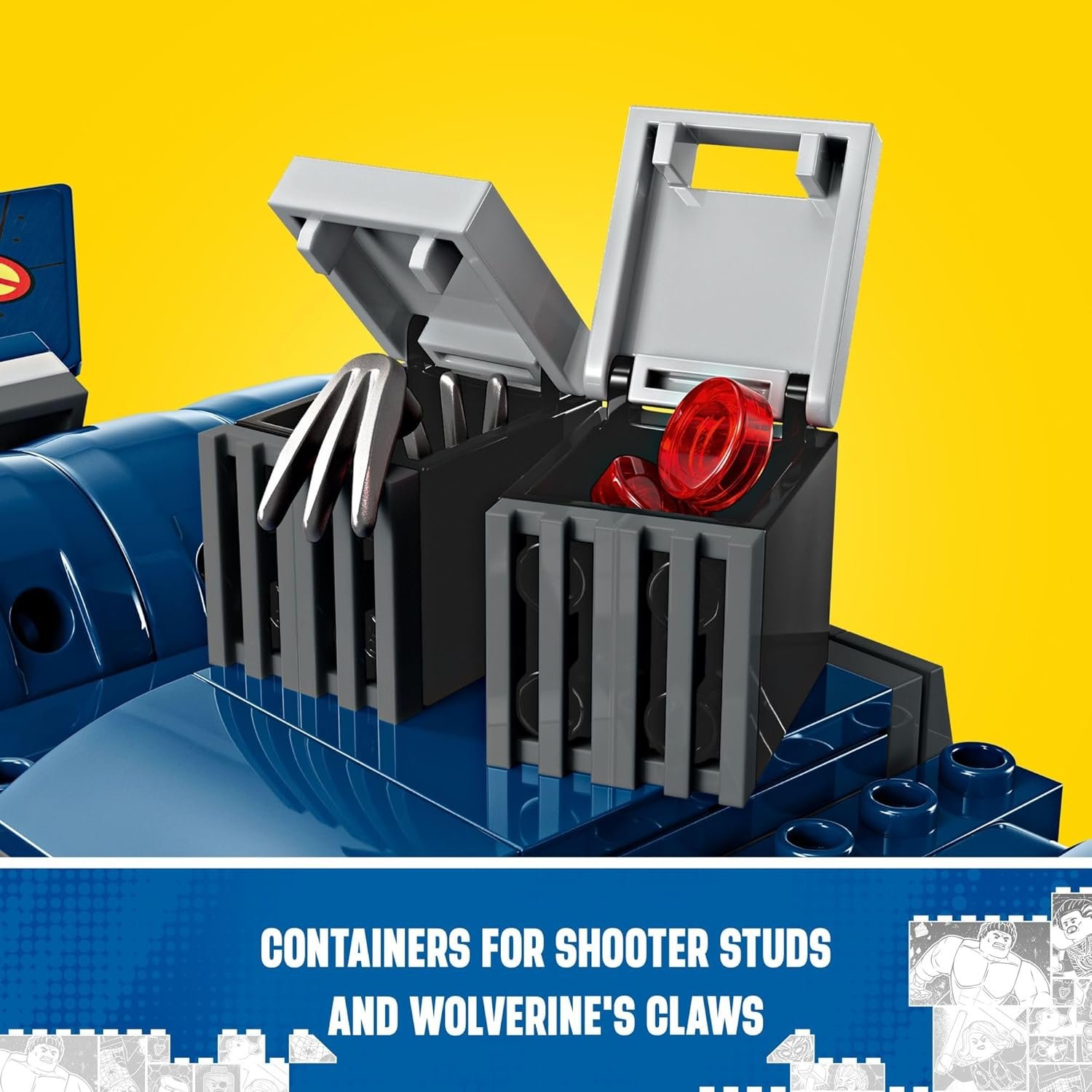 Features a dual cockpit with room for 4 heroes. Includes Cyclops, Rogue, Magneto, and Wolverine minifigures for epic, high-flying adventures.